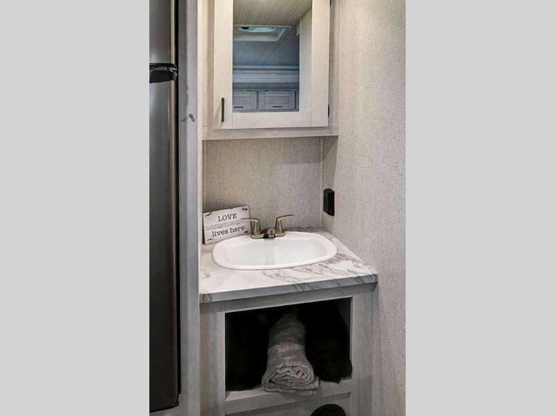 Each model is built to last with 2" Azdel composite exterior sidewalls, a TPO roof membrane, and a one-piece painted fiberglass front cap. You will love the soft close hardwood cabinet doors and drawers inside, along a high-altitude tankless water heater for endless hot showers.